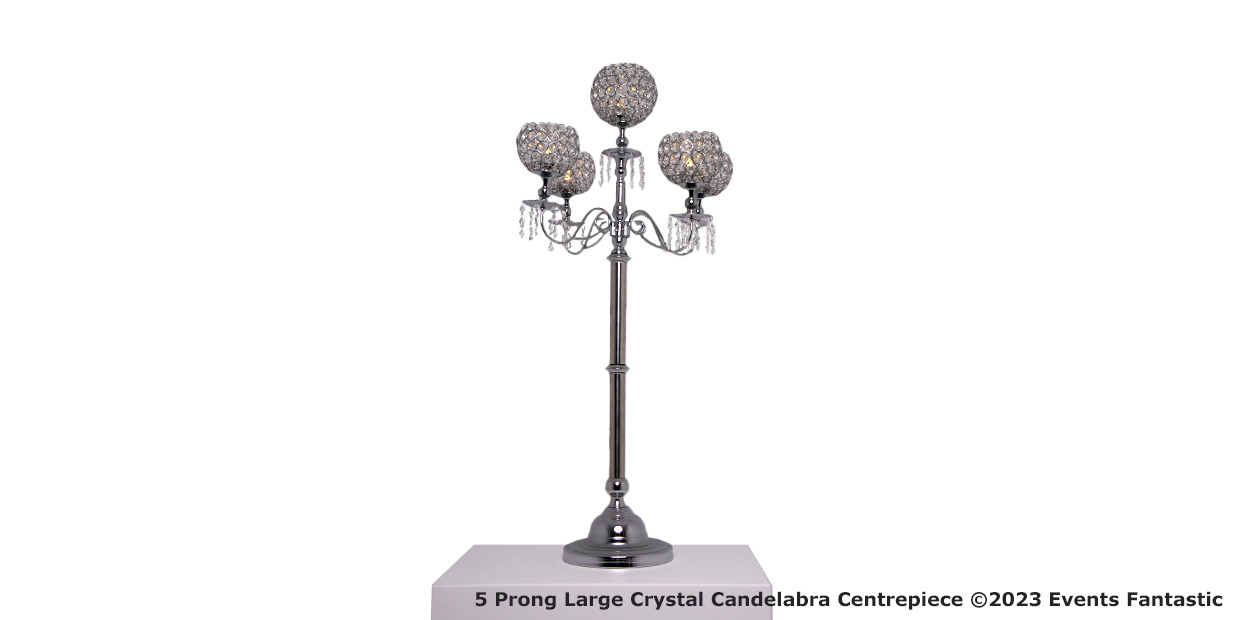 The 5 Prong Large Crystal Candelabra is a captivating centrepiece that promises to add a touch of sophistication and glamour to any event. With its glistening crystals and elegant design, it’s sure to leave a lasting impression on your guests.
