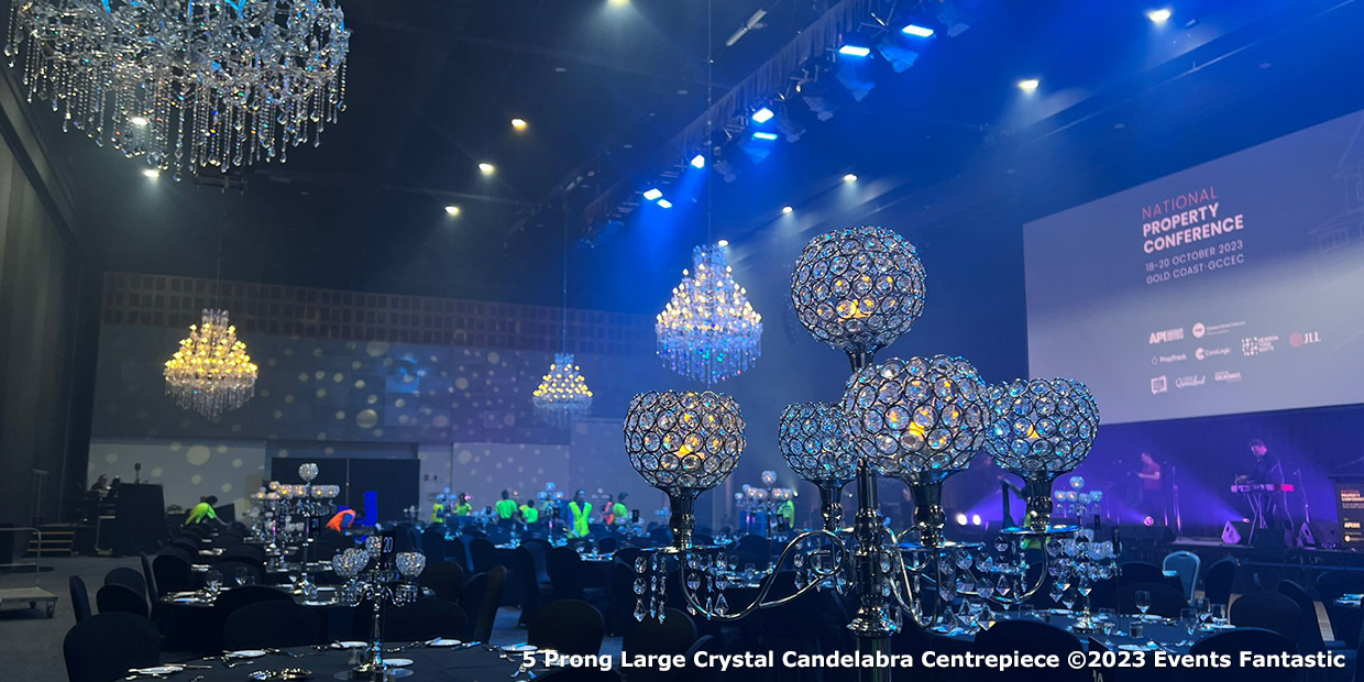 The 5 Prong Large Crystal Candelabra is not just about aesthetics; it's also about practicality. Weighing 3.2 kg and measuring 50 cm wide, it is sturdy yet manageable. This balance in design ensures that the candelabra can be easily transported and set up at various event locations across the Gold Coast, Tweed, Brisbane, and Australia-wide.