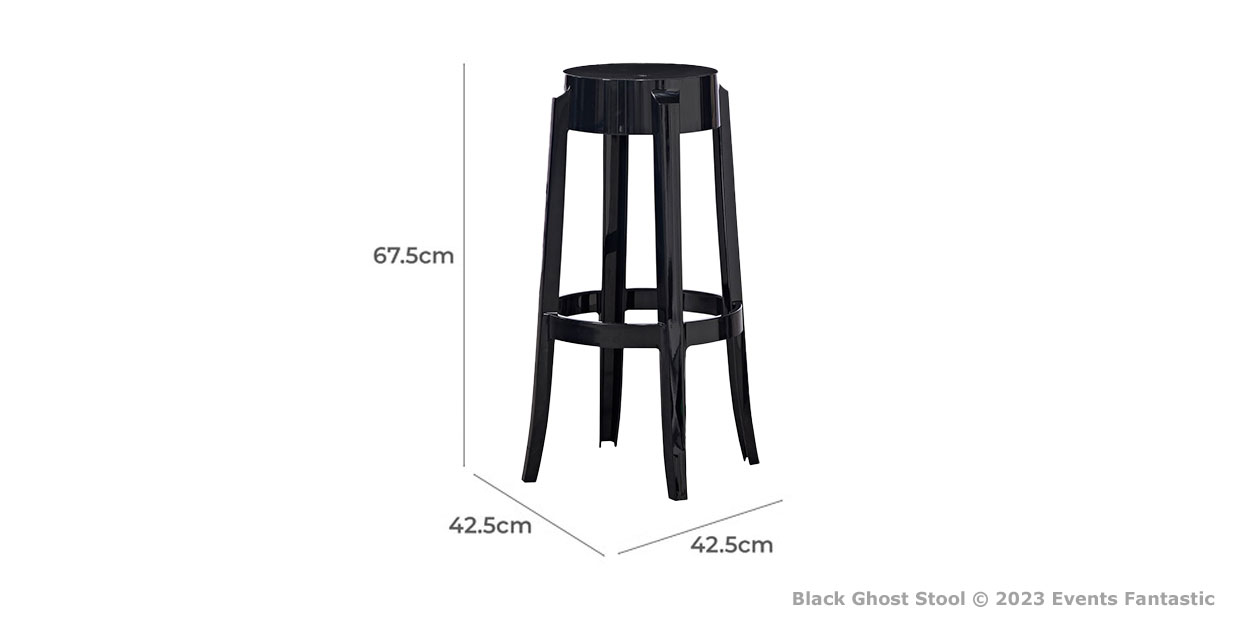 The Black Ghost Stools is a testament to modern design and sophistication. Crafted with high-quality polycarbonate and finished in a sleek black, these stools are not just seating options but a statement of style. Perfect for any event theme, their dark elegance and adaptability blend seamlessly with various colour schemes and decor styles.