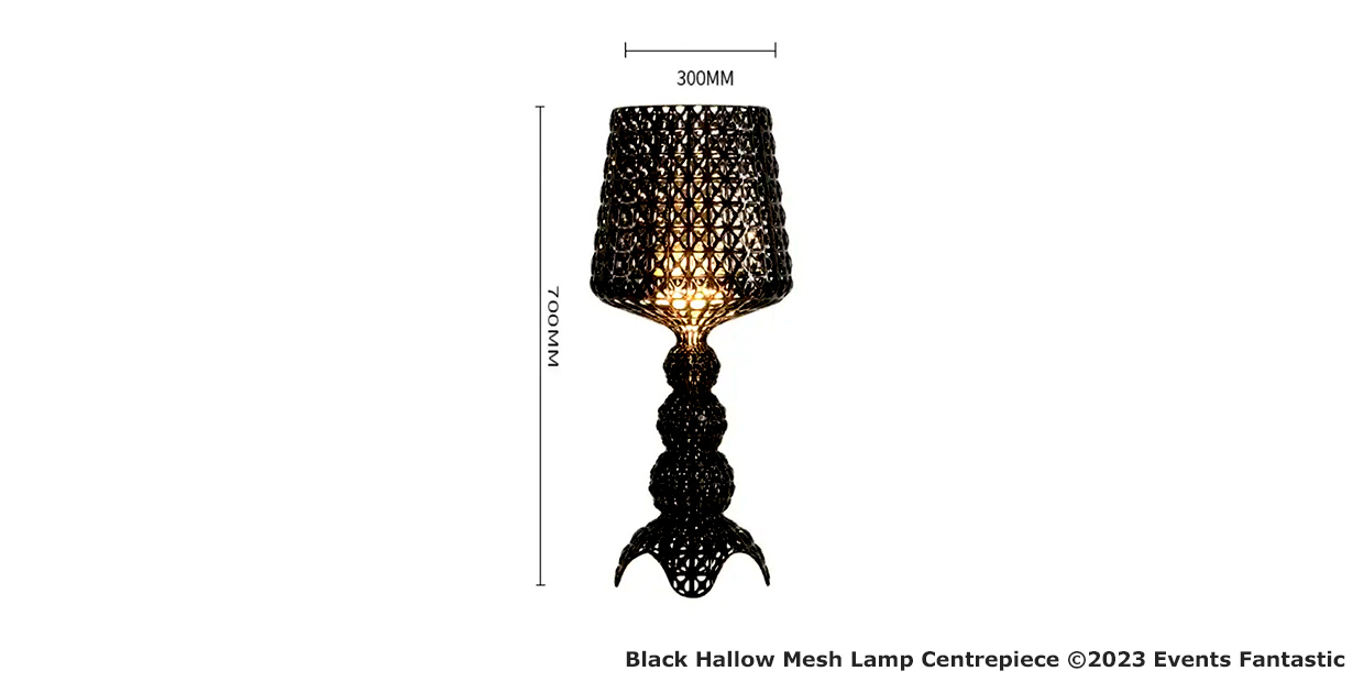 Bring your event visions to life with the Black Hallow Mesh Lamp Centrepiece, a perfect blend of beauty, versatility, and functionality that ensures your gathering will be one to remember. Let this stunning piece be the highlight of your décor, creating an enchanting environment that delights your guests and elevates your event to new heights.