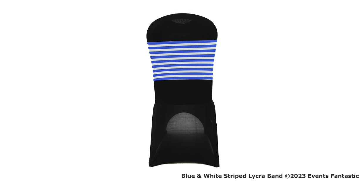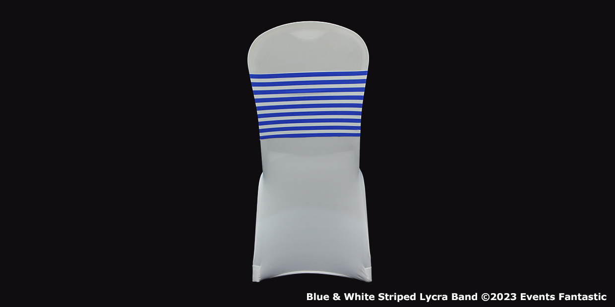 What events are perfect for Blue & White Striped Lycra Chair Band?