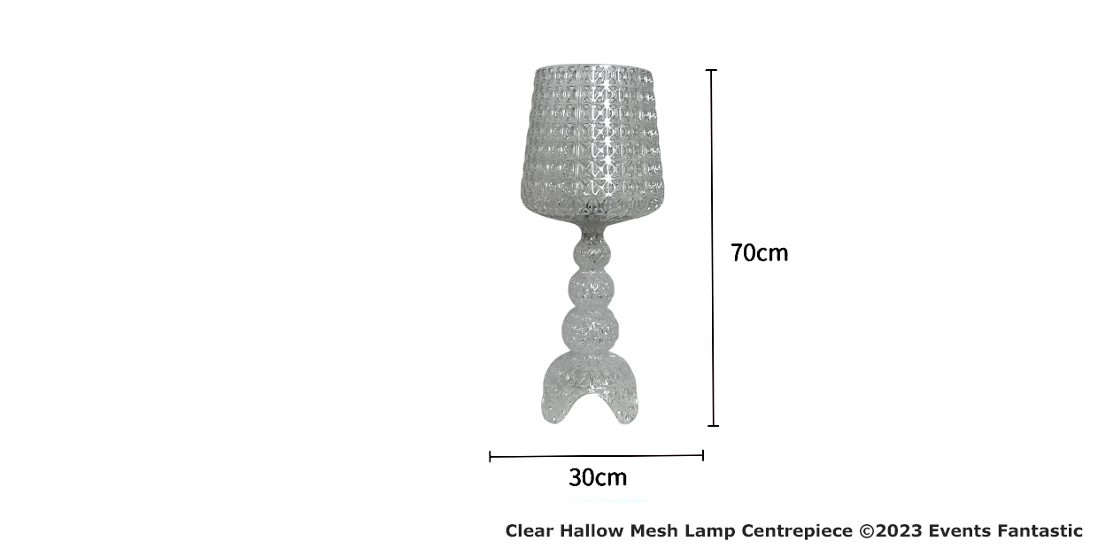 Experience the elegance and charm that the Clear Hallow Mesh Lamp Centrepiece brings to your event. This stunning centrepiece is designed to impart a sophisticated glow to your table arrangements, creating an unforgettable ambiance for you and your guests. Its clear mesh design makes it a versatile addition to any event, from lavish weddings to chic corporate gatherings.