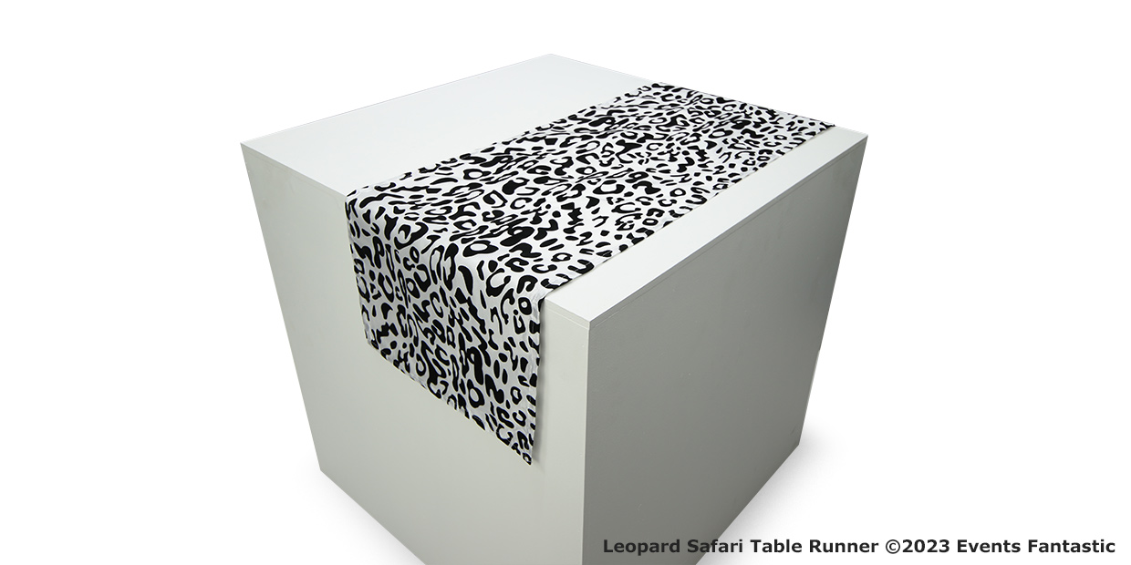 Immerse your event in the wild charm of the Leopard Safari Table Runner. This stunning piece features a captivating black and white leopard print pattern, perfect for adding a touch of jungle glamour to any themed party or business event. Its bold design is sure to make a statement on any table setting.Versatile Styling