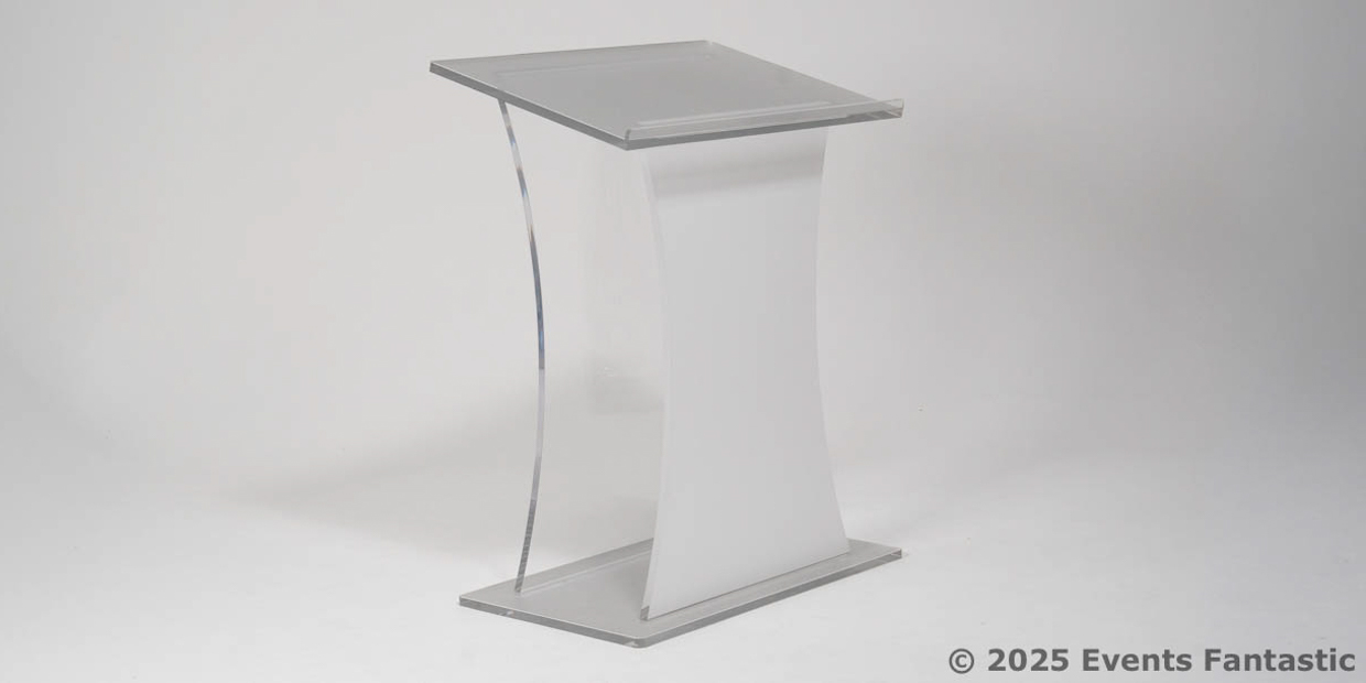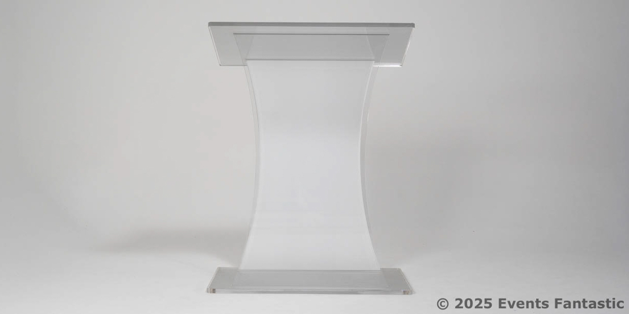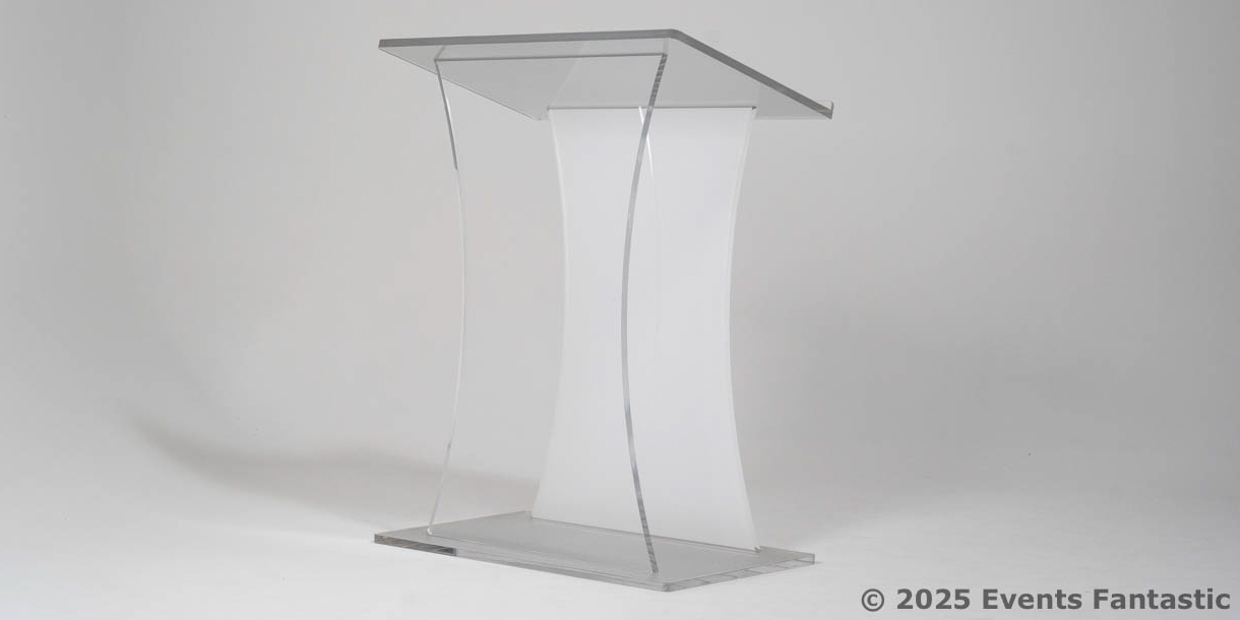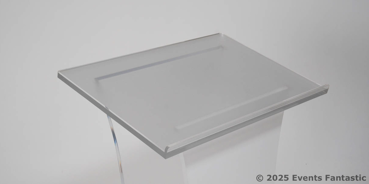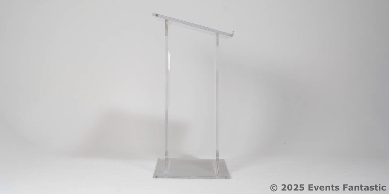 Crafted from high-quality transparent acrylic, this compact lectern creates an elegant focal point without overwhelming your event space. The clean lines and contemporary design make it an ideal choice for venues of all sizes, from intimate boardrooms to medium-sized conference halls. Standing at a comfortable speaking height, the lectern features a spacious, angled top surface perfect for notes, tablets, or presentation materials.Perfect for Modern Event Spaces