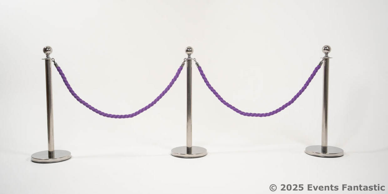 Don't miss the opportunity to add a touch of elegance to your next event. Our Purple Rope for Silver Bollard is in high demand, so we recommend booking early to secure your rental. Contact our friendly team today to discuss your event needs and reserve your purple ropes. Let us help you create an unforgettable experience that your guests will be talking about long after the event ends. Transform your event space into a luxurious venue with our Purple Rope for Silver Bollard. Book now and take the first step towards an extraordinary event!Answers to your questions