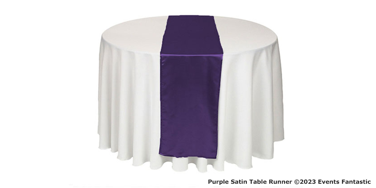 A variety of decor pieces can be combined with this purple satin table runner to create an exquisite and well-coordinated event theme. For a more regal appearance, pair it with silver or gold centrepieces; alternatively, go with pastel-coloured flowers for a more delicate, romantic feel. Its adaptability to both classic and contemporary aesthetics makes it a valuable addition to the decor of any event.