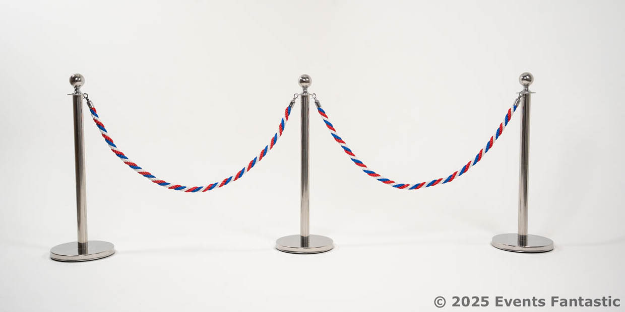 Don't miss the opportunity to add a touch of patriotic elegance to your next event. Our Red, White and Blue Rope for Silver Bollards is in high demand, especially during national holidays and election seasons. Secure your rental now to ensure availability for your upcoming function. Contact our friendly team today to discuss your requirements, request a quote, or place your booking. Let us help you create an unforgettable event celebrating National pride in style.More Suggested Items