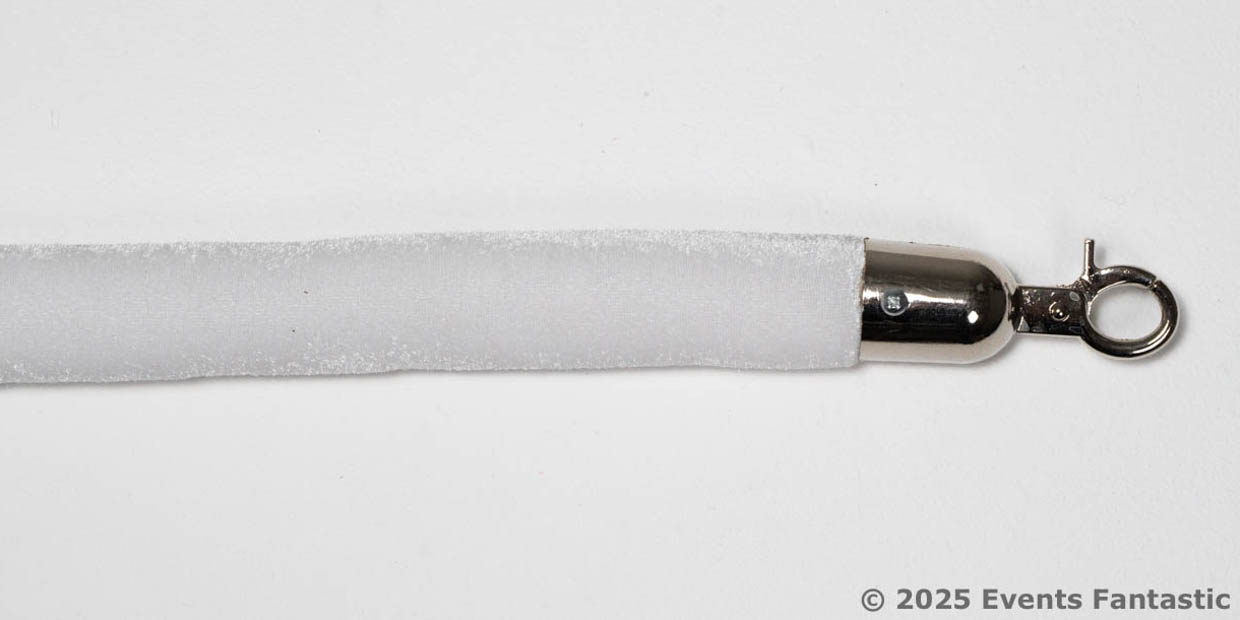 The White Velvet Rope is designed to complement silver bollard poles, adding a touch of class to any setting. Its dimensions (1.5m long and 3cm in diameter) ensure it's both noticeable and functional, perfect for creating orderly lines or sectioning off exclusive areas. The rope's lightweight design (0.5 kg) makes it easy to set up and rearrange as needed, offering flexibility for event planners.This White Velvet Rope is versatile for various event types, from corporate gatherings to gala dinners. It's an excellent choice for creating a sophisticated entrance at award shows, fundraisers, and theme parties. Its adaptability makes it suitable for both indoor and outdoor settings, ensuring your event space is both functional and stylish.