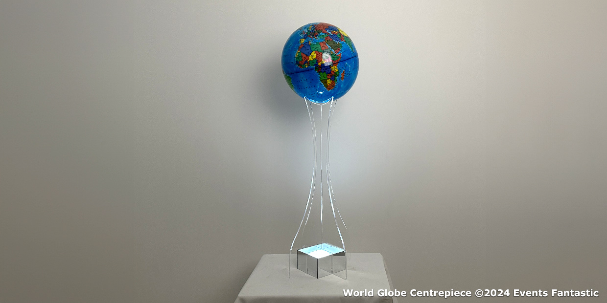 Bring a touch of global elegance to your event with our World Globe Centerpiece. This eye-catching decoration serves as both a conversation starter and a beautiful focal point for any table. Perfect for travel-themed parties, corporate events, or educational gatherings, our globe centrepiece adds a worldly flair to your decor.